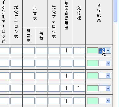 左のフィールドは、点検時の判定を入力し、右のフィールドは措置後の判定を入力します。
